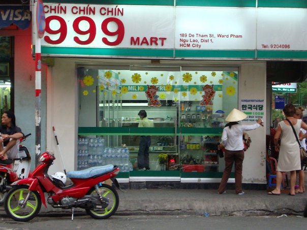 Me hizo gracia descubrir, a estas alturas del partido y mientras nos sentábamos a tomar cerveza y ver pasar motocicletas desde la terraza —es un decir— de un bar de Pham Ngu Lao, en Hanoi, que la parte final del estribillo tenía sentido en la lengua del Tío Ho y era además un nombre propio: el de una cadena de minisupermercados. Una amiga vietnamita me explicó poco después el sentido del nombre y me dio la sorpresa mayor: el 9 (chin) es un número de buena suerte en Vietnam y 999 significa “que la buena fortuna te acompañe largamente”. O sea que los manifestantes coreaban algo así como “¡Larga gloria a Díaz Ordaz!”.